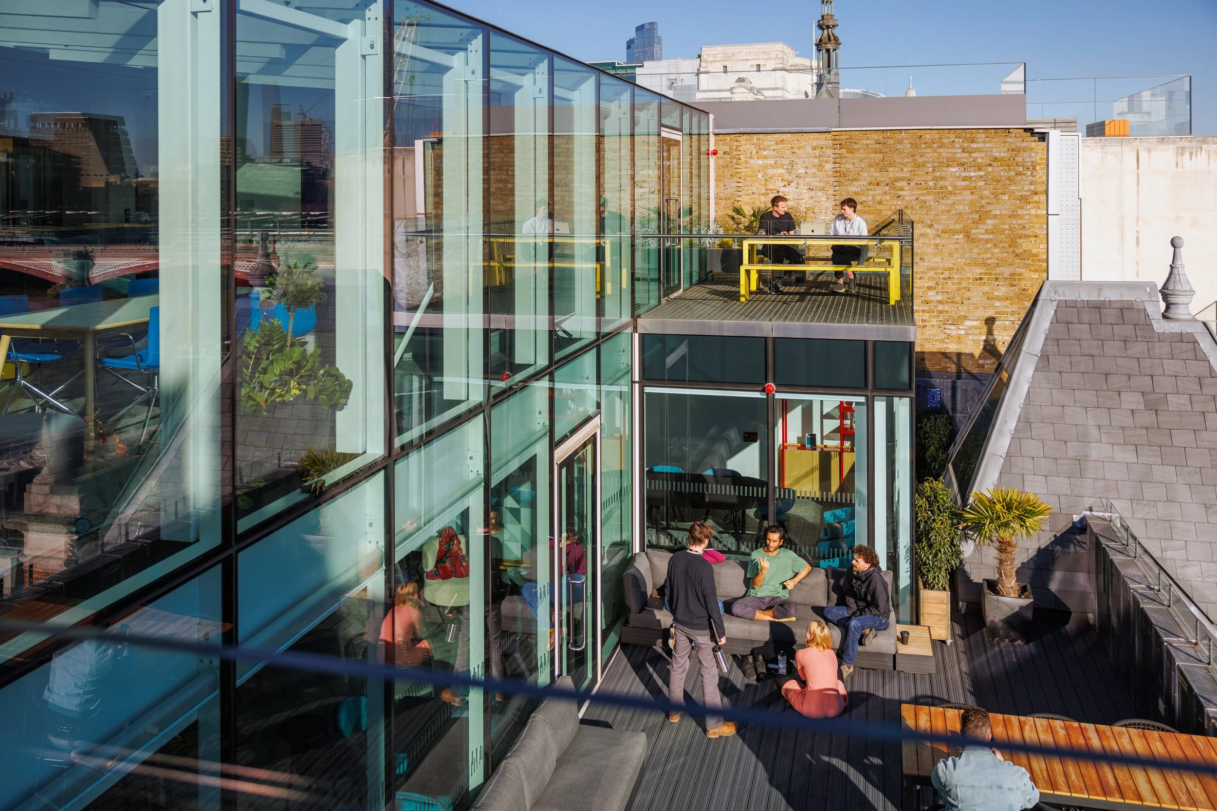Drawing from nature, our light-filled spaces are thoughtfully curated to encourage productivity and collaboration. Form and function combine in bright open-plan environments enlivened with bold splashes of colour to energise and inspire. Take in views across the Thames in social settings or escape to a comfortable seat in a secluded corner for quiet contemplation.