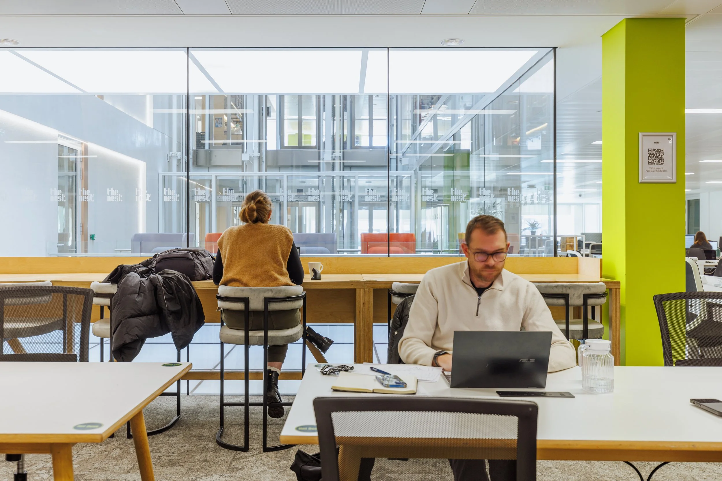 Designed to adapt to your needs, flexible desks encourage collaboration and creativity, with quiet zones, a library and dynamic seating areas to drift between. Whether you’re flying solo or setting down roots with your team, our hot desk or fixed desk options allow you to achieve your goals with ease. A fully stocked kitchen with complimentary hot drinks, high-speed Wi-Fi and free printing come as standard, alongside storage and around-the-clock access for those who work outside the lines.